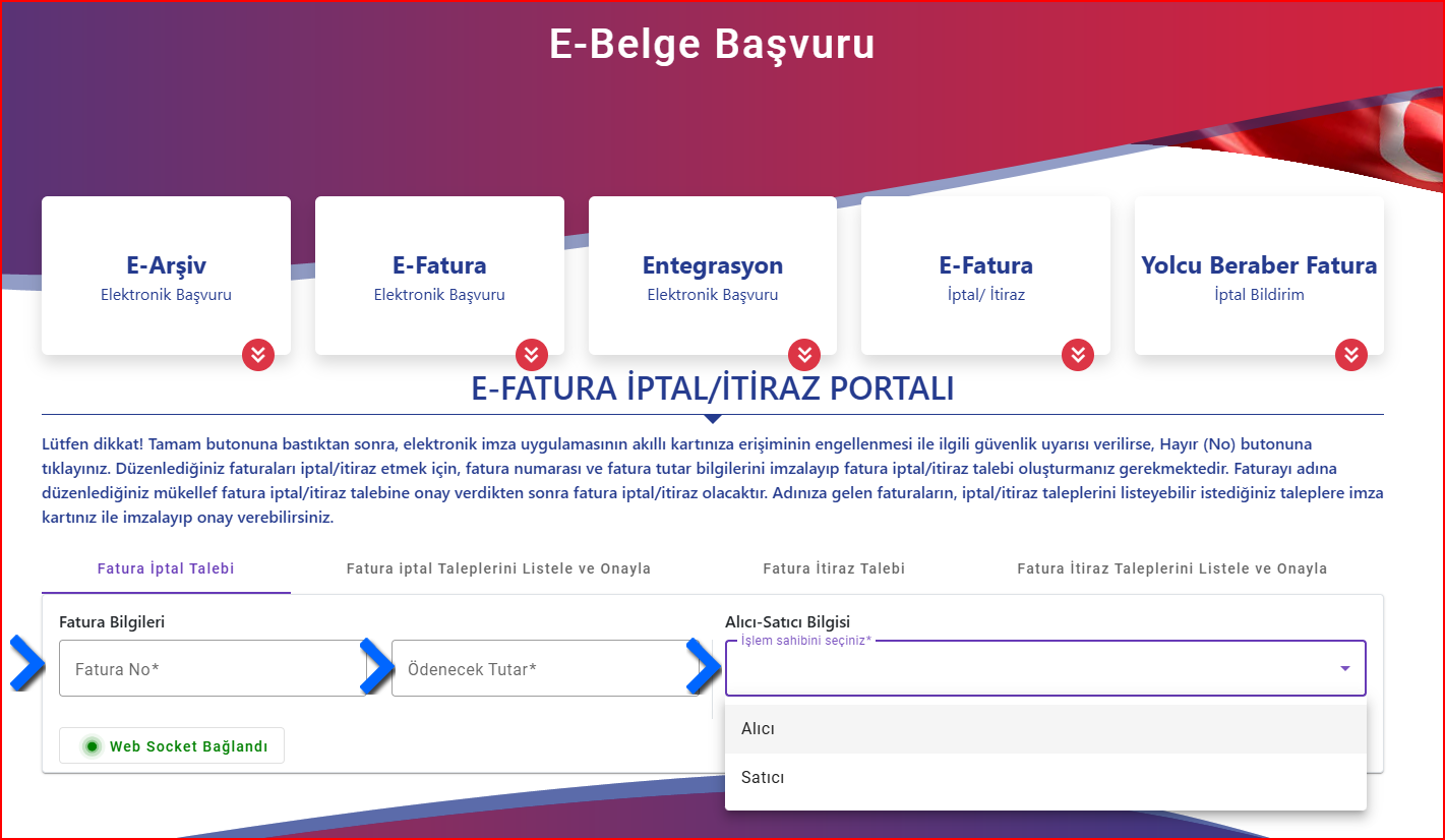 Bu ekranlardan iptal ve itiraz yaparak faturalarınızı iptal edebilirsiniz.